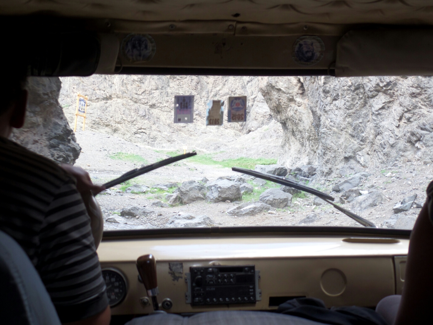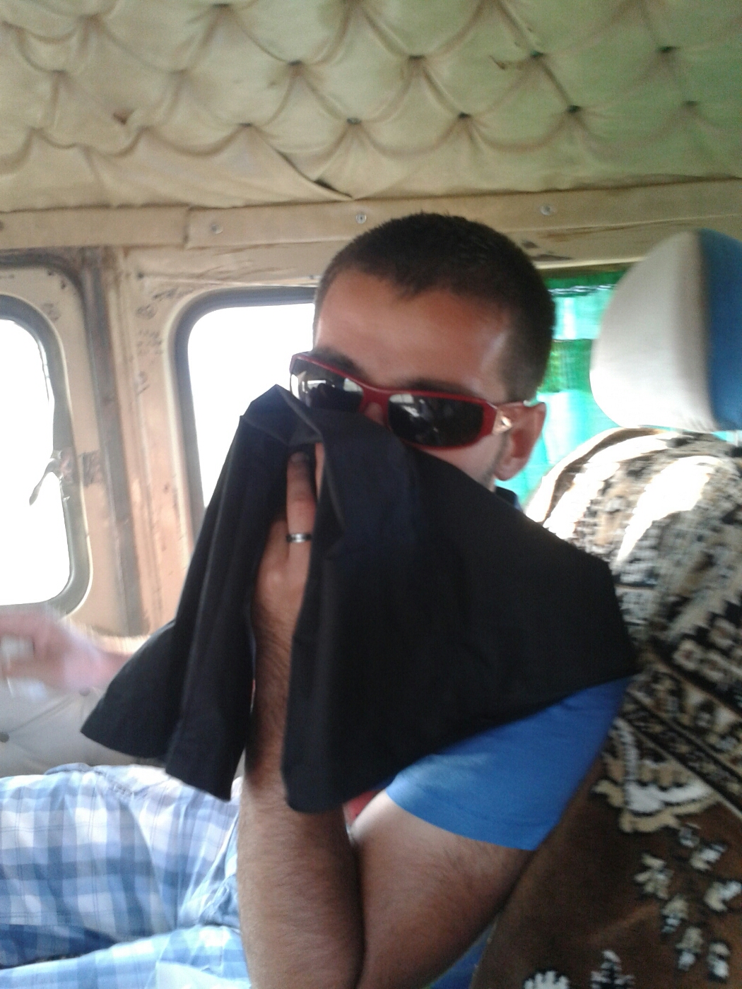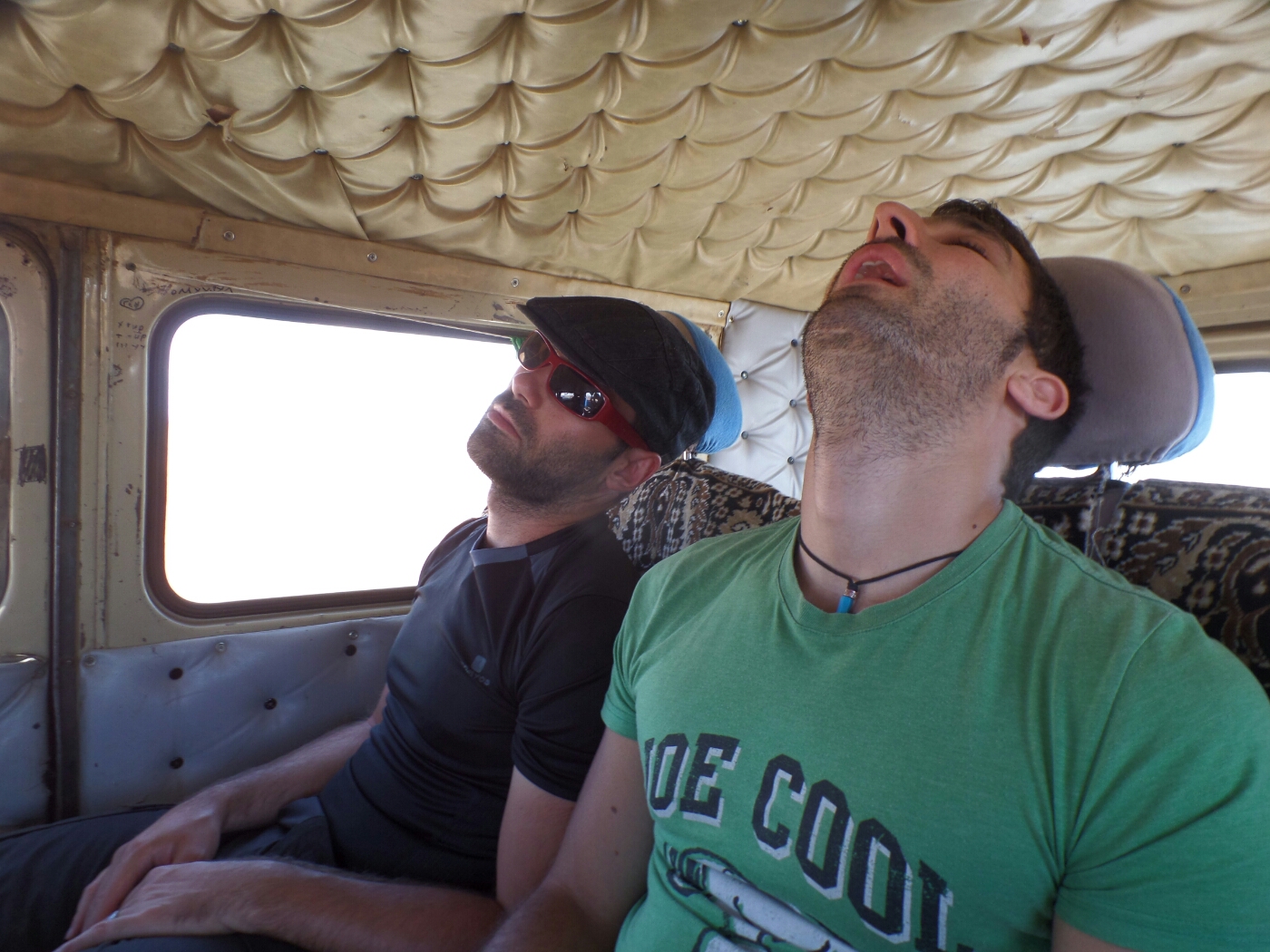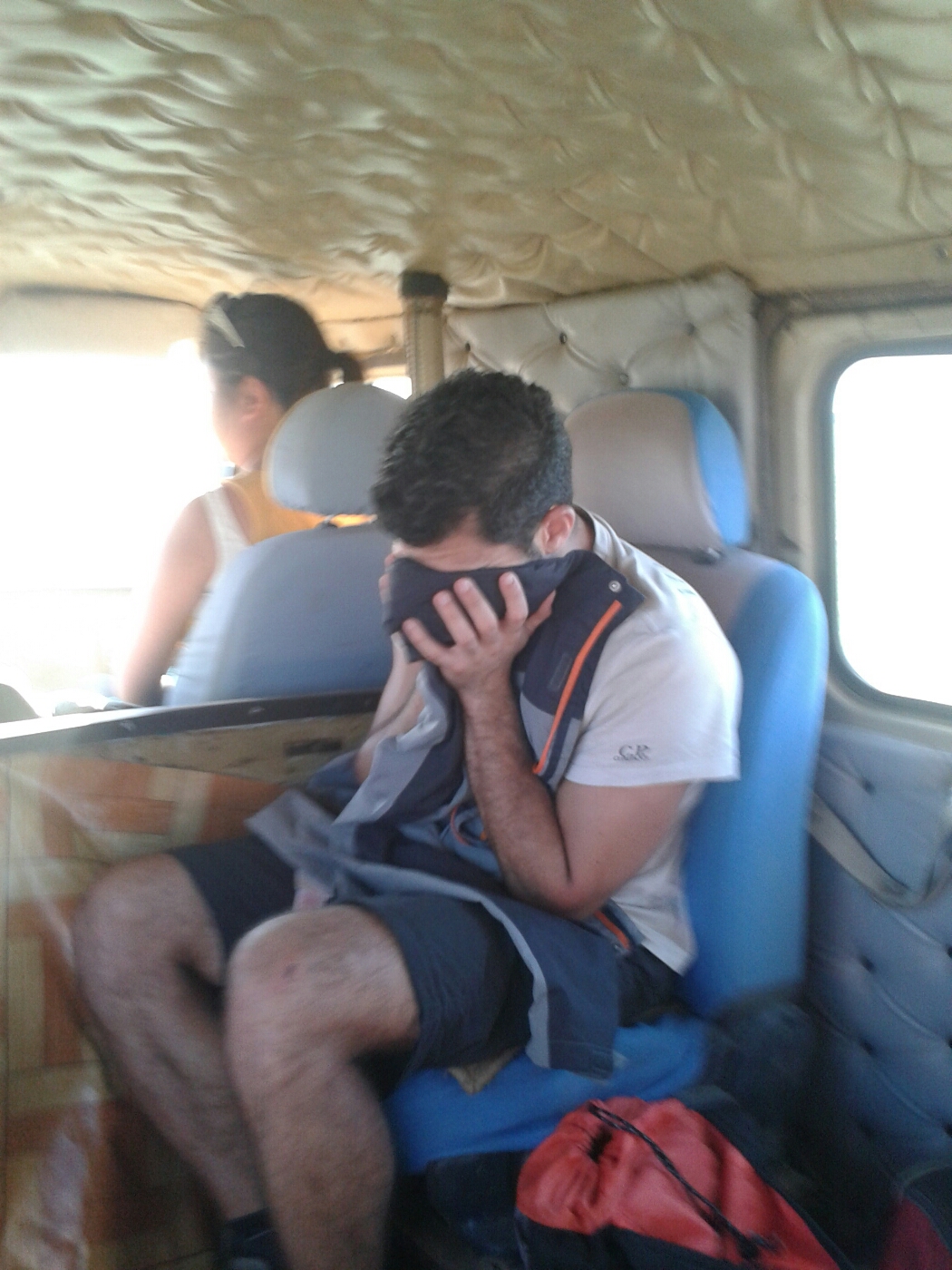 A fast drive over sand in a van with broken windows, makes for a very dusty ride indeed!